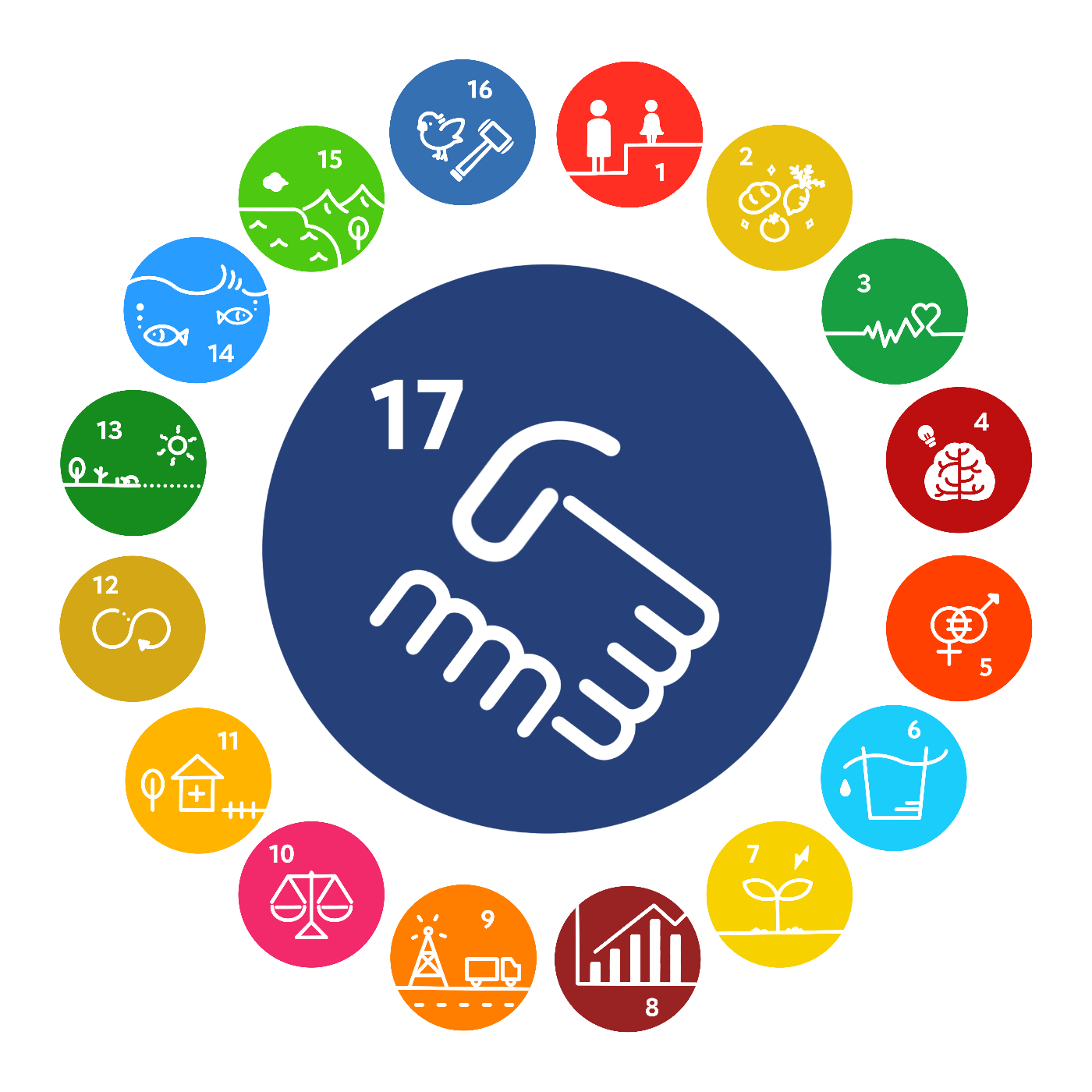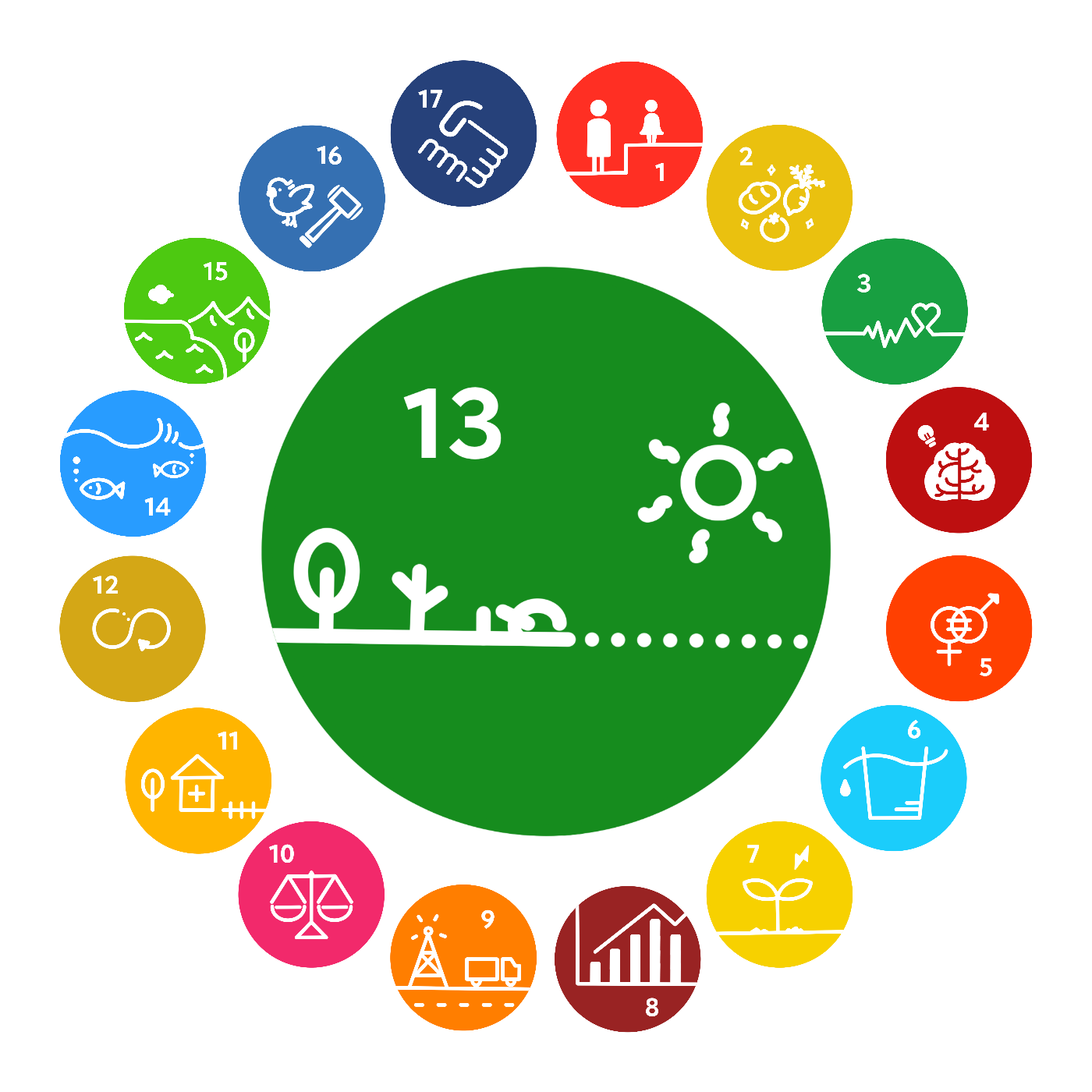 SDGsの1~16を達成するには、大規模な投資や支援が必要。気候変動やエネルギーに関する問題は、先進国と発展途上国が協力し、世界全体で取り組まないと解決が難しい。